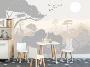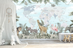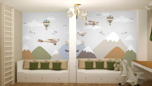 - Детская: Безопасные материалы, добрые сюжеты, карты мира. Учитывайте возраст и интересы ребенка. Зонируйте игровую и спальную зону разными рисунками.