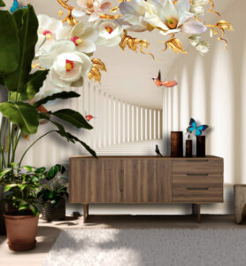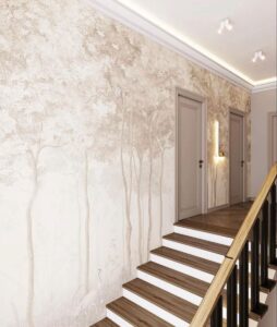 - Прихожая и коридор: Светлые сюжеты, добавляющие света и простора. Узкие коридоры «расширят» горизонтальные линии или перспектива.