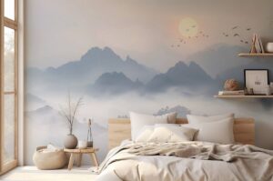 - Эффект: Создает глубину, ощущение дали и философского созерцания. Идеально для акцентной стены в гостиной или зоне медитации.